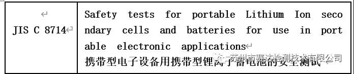 電池KPS認(rèn)證主要測(cè)試標(biāo)準(zhǔn)為IEC61960
