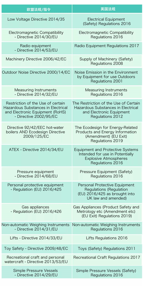 CE法規(guī)/指令與英國法規(guī)的對照