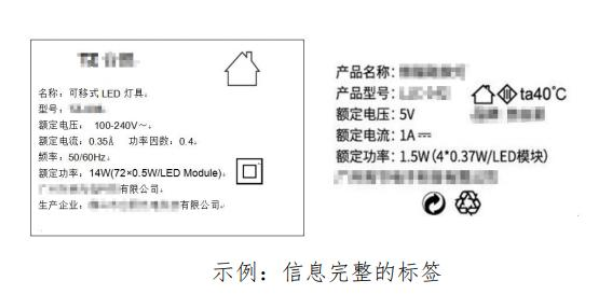 除此之外,在國家燈具安全標準 GB 7000.1 和 GB 7000.4、GB 7000.204 等標準中,對產(chǎn)品上的標識有:企業(yè)名稱或商標、規(guī)格型號、電壓、電流、功率、功率因數(shù)等參數(shù)。產(chǎn)品上的以上標識印刷要清晰,一般擦拭后不應脫落、掉色。對缺少必要信息,標識極為容易被擦掉(如使用普通紙印刷的銘牌),標識有歧義的產(chǎn)品應避免購買。