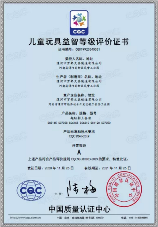 認證規(guī)則:CQC92-385003-2019 兒童玩具益智等級評價規(guī)則