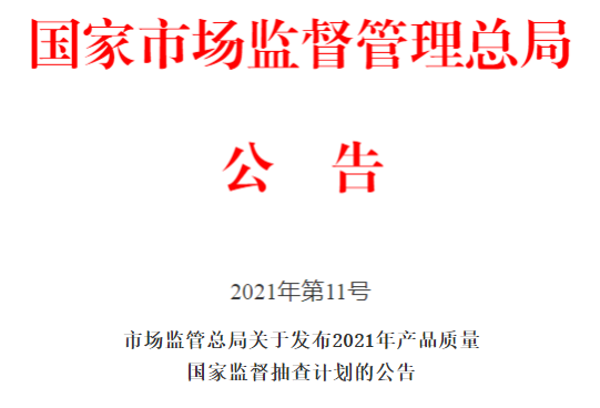 2021年產品質量國家監督抽查計劃