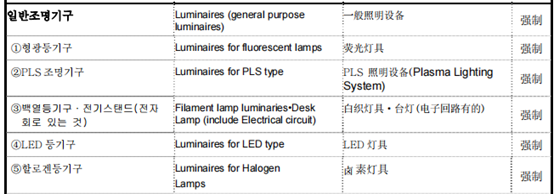 其中出口到韓國(guó)的照明設(shè)備,按照產(chǎn)品分類需要做以下證書: