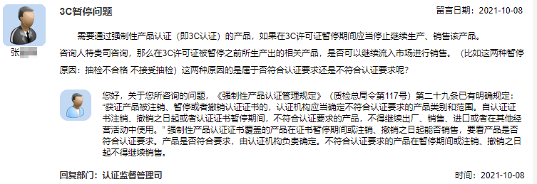 需要進(jìn)行強(qiáng)制性產(chǎn)品認(rèn)證的產(chǎn)品,3C證書(shū)暫停期間應(yīng)當(dāng)停止繼續(xù)生產(chǎn)、銷(xiāo)售該產(chǎn)品。那么在3C證書(shū)被暫停之前所生產(chǎn)出的相關(guān)產(chǎn)品,是否可以繼續(xù)流入市場(chǎng)進(jìn)行銷(xiāo)售?比如這兩種暫停原因:抽檢不合格,不接受抽檢,這兩種原因的是符合認(rèn)證要求還是不符合認(rèn)證要求呢?