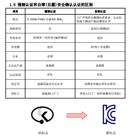 電子電器產品出口到韓國需要進行KC認證。根據《韓國電氣用品安全管理法》規定,自2009年1月1日起電氣產品安全認證分為強制性認證及自律(自愿)性認證兩種: