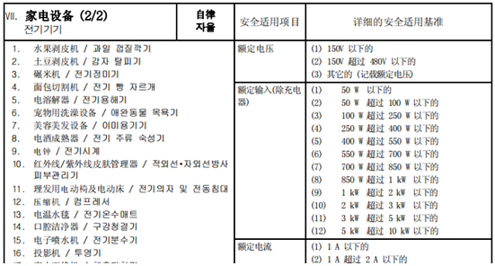 其中出口到韓國的家電設備,按照產品分類需要做以下證書: