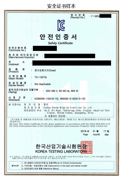 2.Safety一般標準有:KC60335-1,KC60335-2-X 等不同類型家電標準