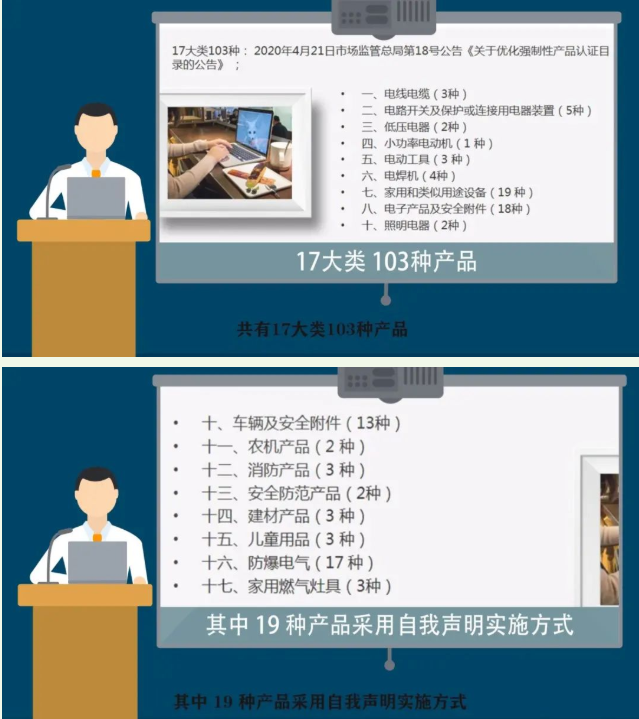 現(xiàn)如今,帶有“CCC”標(biāo)志的強(qiáng)制性認(rèn)證產(chǎn)品隨處可見(jiàn),像洗衣機(jī)、空調(diào)器、電視機(jī)這樣的家電產(chǎn)品,手機(jī)、電腦等通訊信息產(chǎn)品,以及汽車、電動(dòng)自行車、玩具、電線電纜、裝飾建筑材料等等在內(nèi)共有17大類103種產(chǎn)品(其中19種產(chǎn)品采用自我聲明實(shí)施方式),都需要通過(guò)強(qiáng)制性產(chǎn)品認(rèn)證。