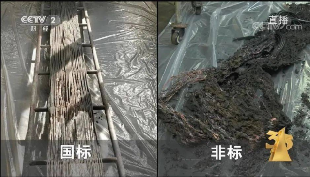 有商家解釋,非標,就是低于國家標準的電線電纜,價格比國標便宜10%到40%左右。在記者詢問的幾十家經營電線電纜的商戶中,至少有三成以上都在經營非標線纜。這些商戶還表示,雖然都是非標產品,但國標該有的東西都有,可以掩人耳目。