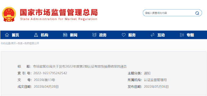 2022年度第2期認(rèn)證有效性抽查結(jié)果的通告