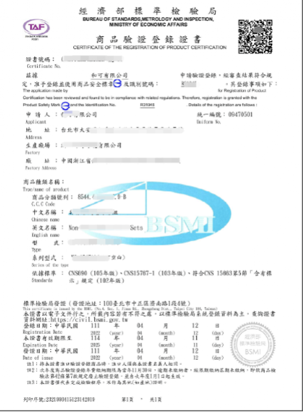 4. BSMI證書三年有效,可延期一次,年費:USD175/份證書;